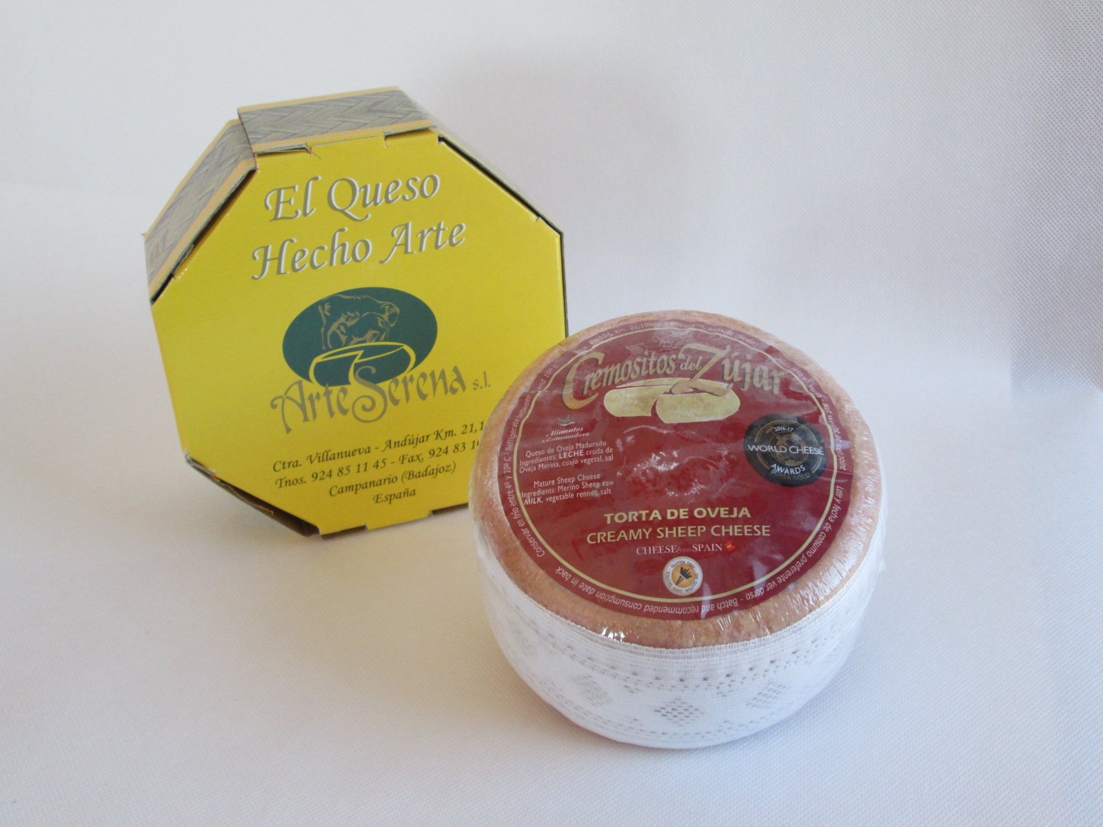 Torta de oveja elaborada artesanalmente con leche cruda de ganaderías propias de raza Merina, cuajo vegetal (Cynara Cardunculus) y sal.